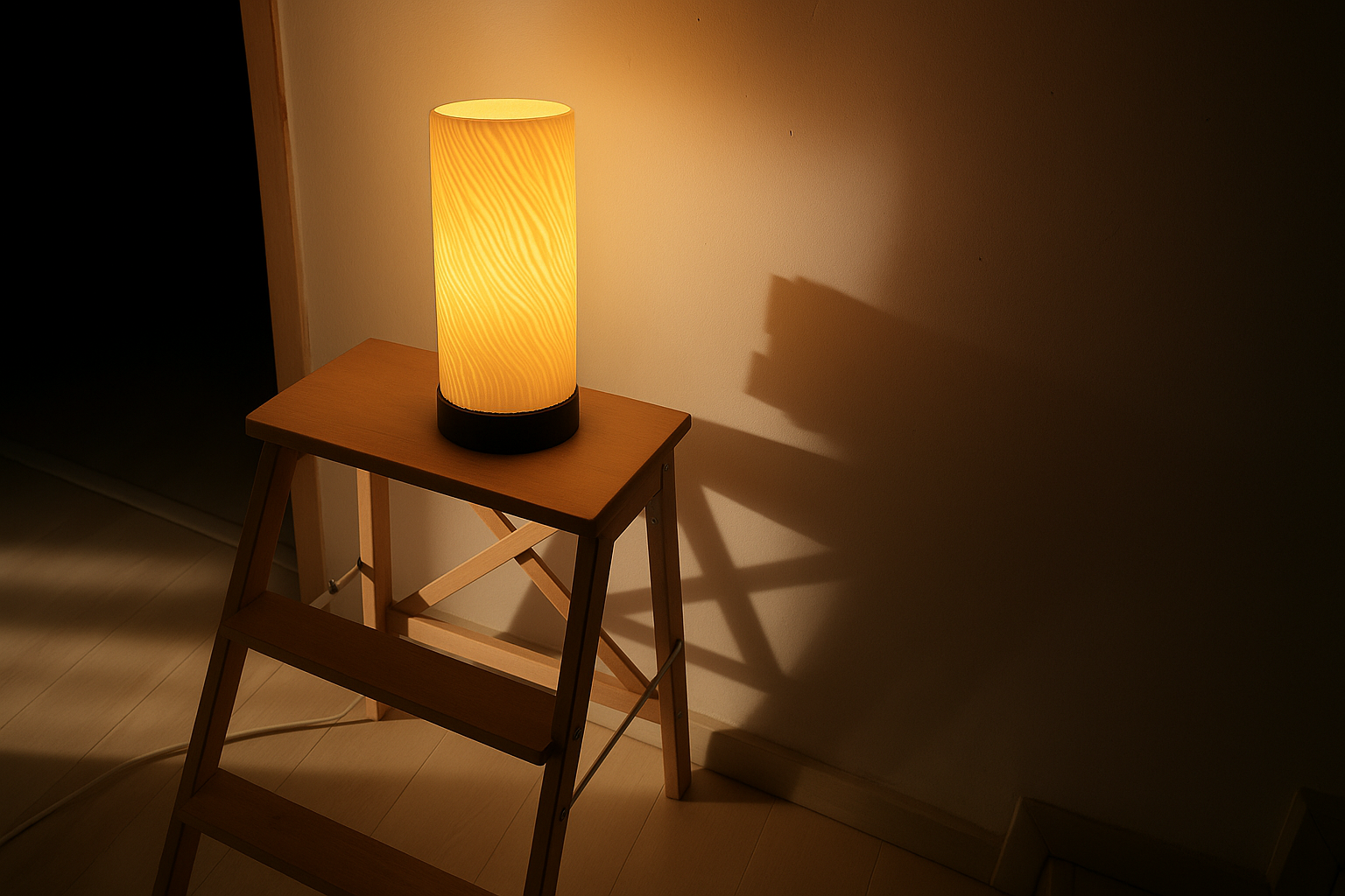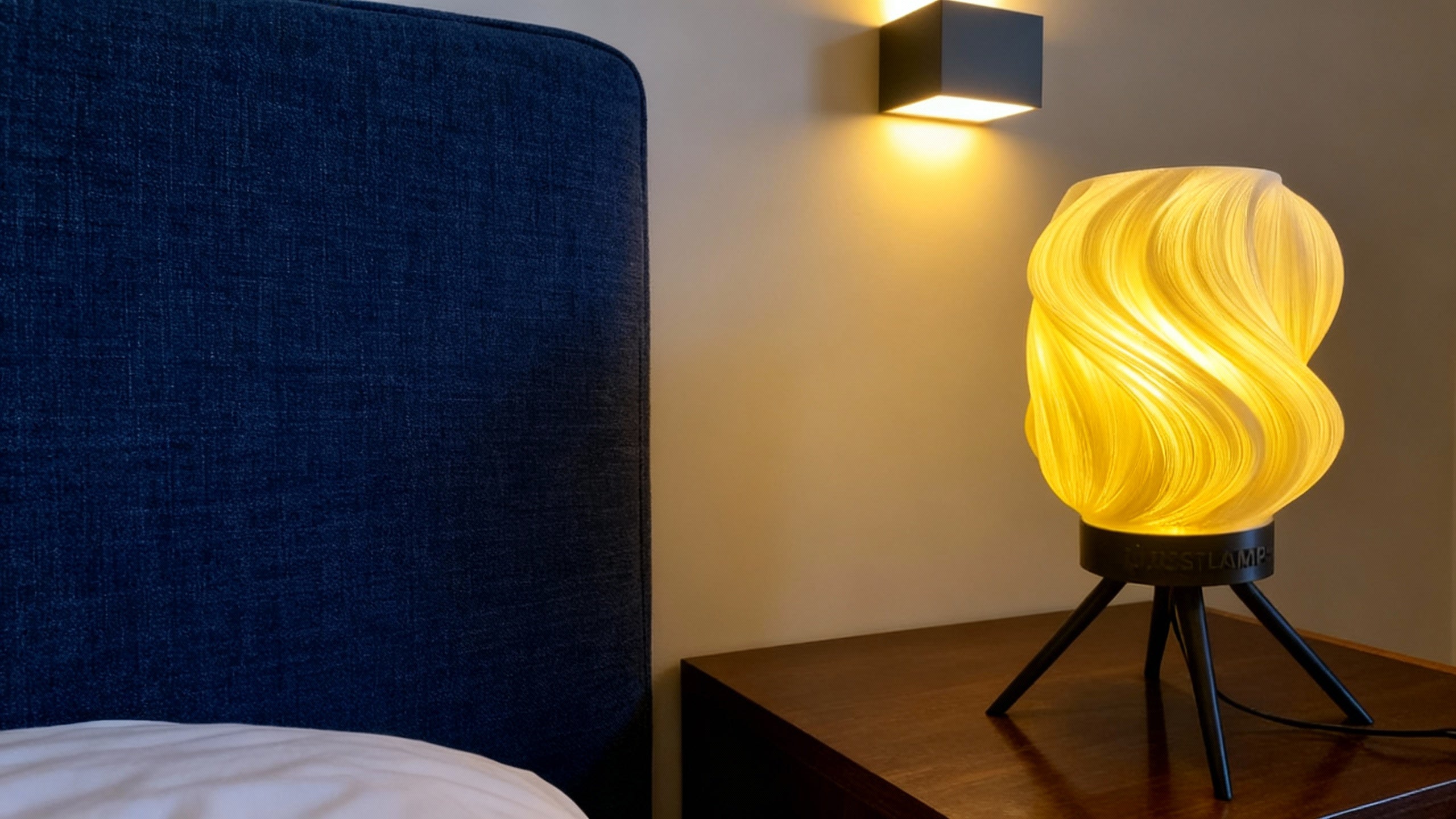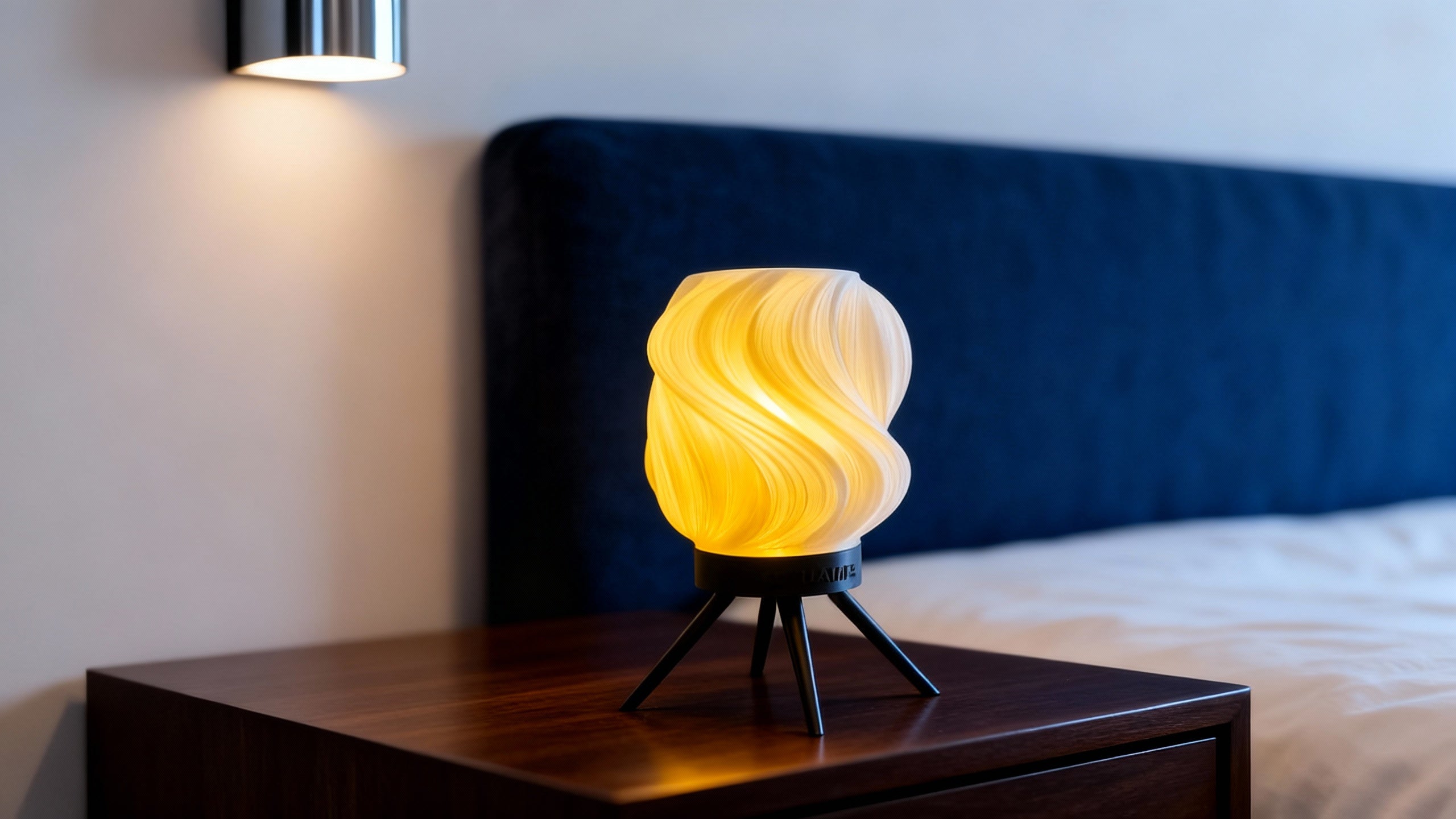 Each lamp features unique geometric forms — from spirals to gyroids — blending art, texture, and soft ambient lighting.
